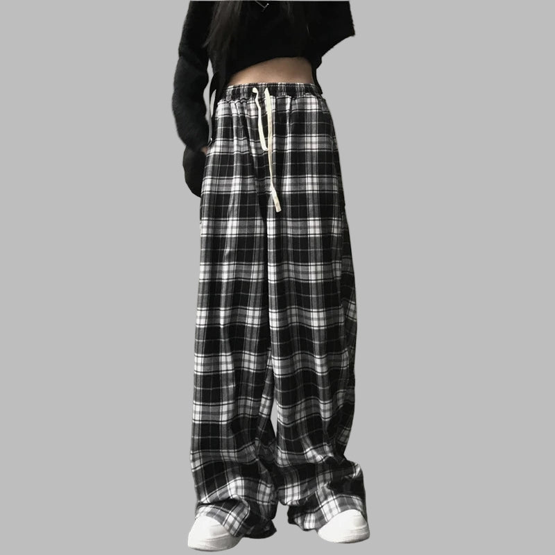 Moteriškos plačios grunge stiliaus juodai baltos languotos kelnės punk Peržiūrėti parinktis