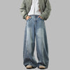 Moteriškos plačios mėlynos vintage stiliaus grunge džinsinės kelnės