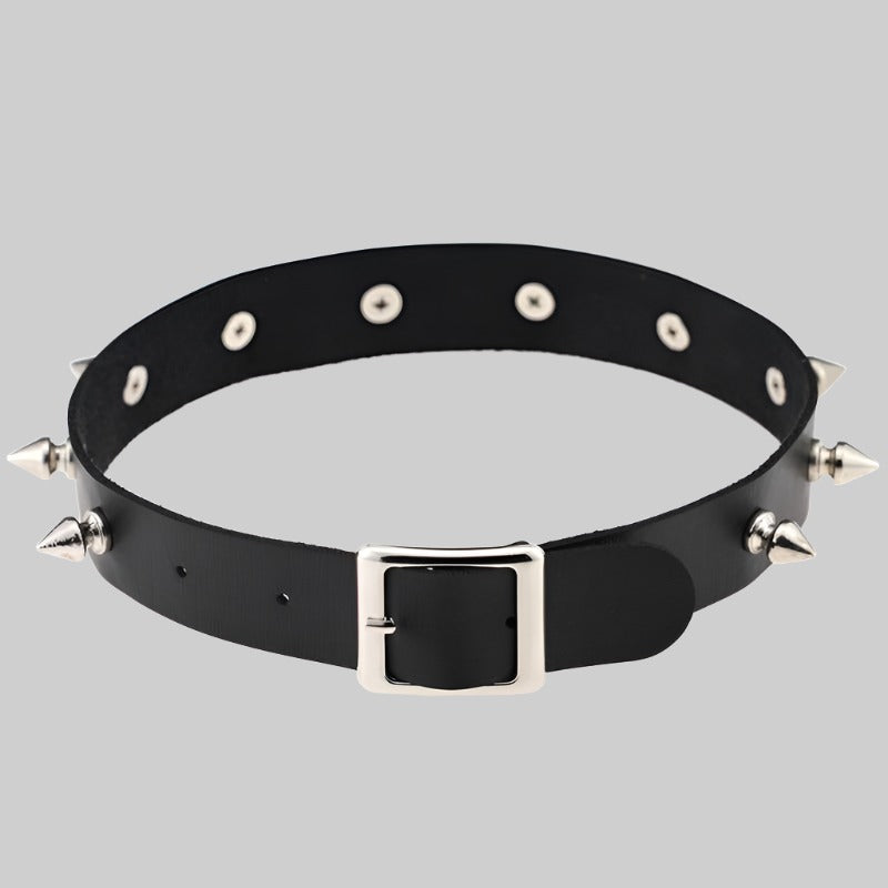 - Apykaklė su vinimis: provokuojantis goth ir punk stilius