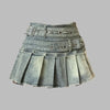 Pilka džinsinis klostuotas sijonas su metalinėmis juostomis Punk Rock