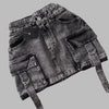 Pilka džinsinis sijonas punk rock su metalinėmis sagtimis ir dirželiais Peržiūrėti parinktis