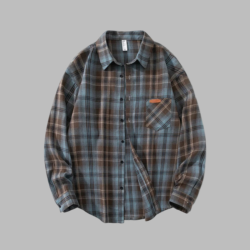 Pilki ir mėlyna languota grunge stiliaus marškiniai su kišene 5XL