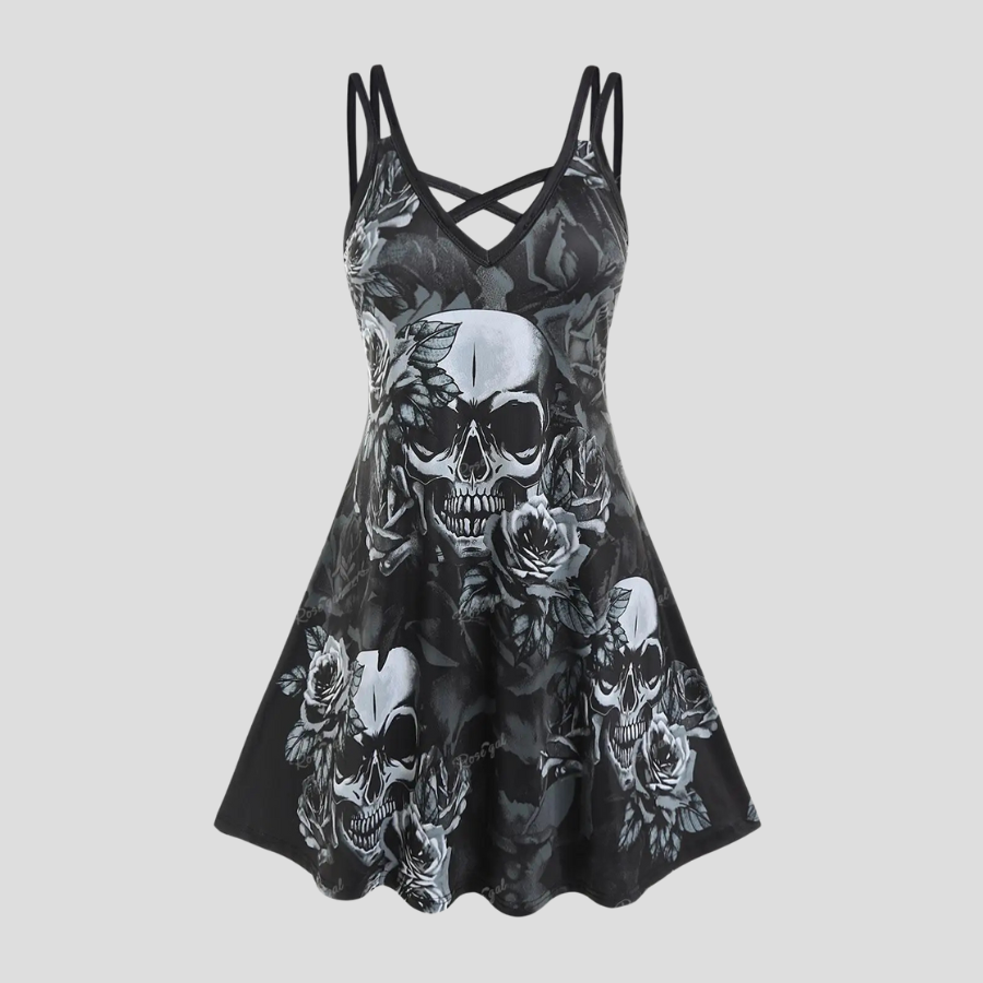 Pilka suknelė su metalinėmis kaukolėmis ir rožėmis Rock Peržiūrėti parinktis