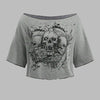 Pilkas crop topas „Rock“ su kaukolėmis ir rožėmis