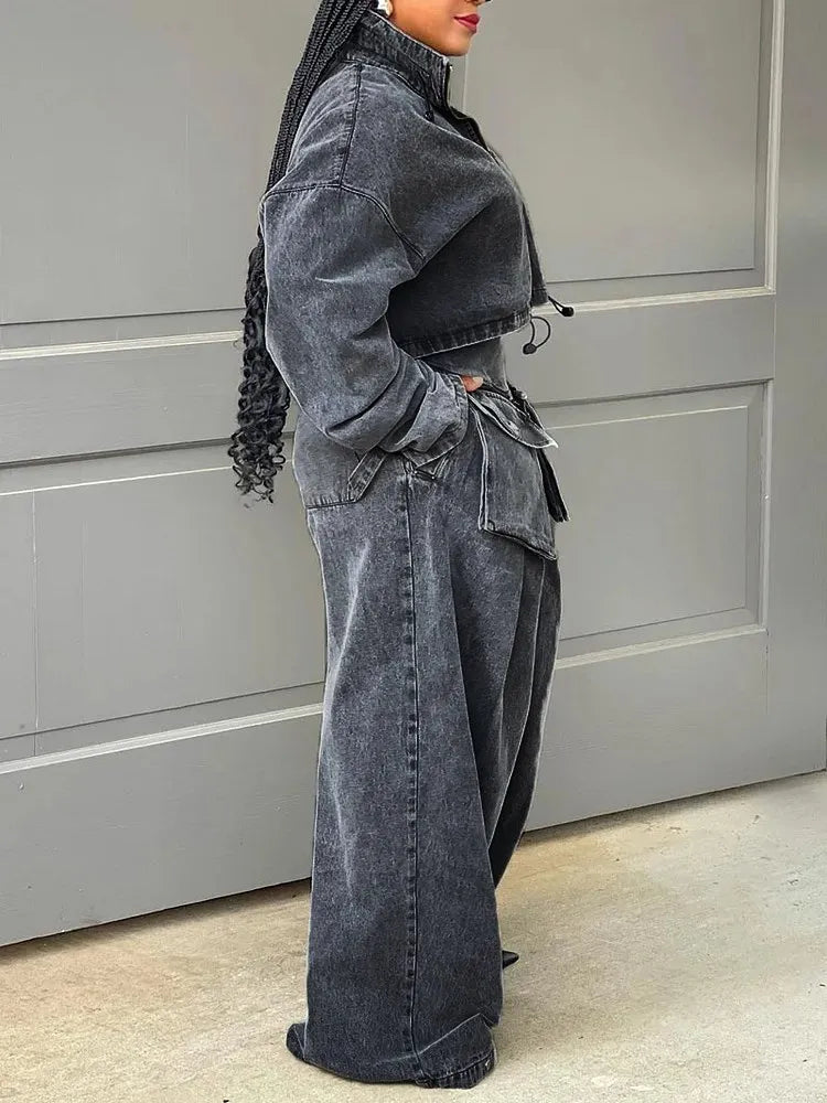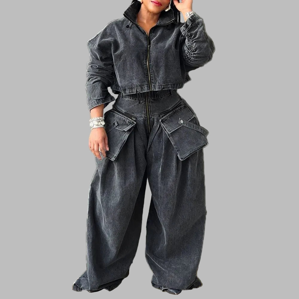 Pilkas džinsinis punk kombinezonas su cargo kišenėmis