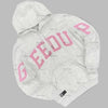Pilkas GEEDUP oversize roko stiliaus džemperis su gobtuvu ir rožiniu užrašu