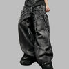 Pilki džinsiniai kelnės su grandinėmis, suplėšytos, baggy stiliaus, punk metalo, unisex