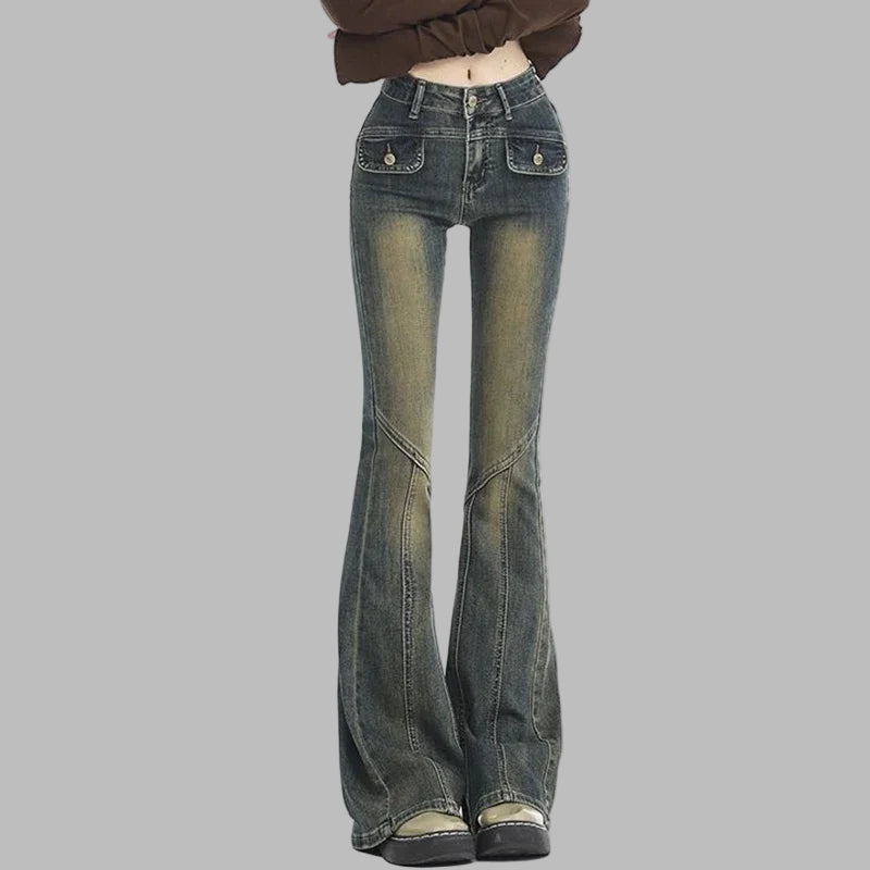 Pilkos vintage stiliaus džinsinės kelnės Rock Flare su įbrėžimais