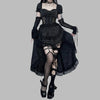 Punk gotikinė juoda asimetriška nėriniuota suknelė Peržiūrėti parinktis