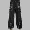 Punk Metal juodos kelnės cargo su baltais akcentais