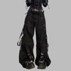 Punk Metal juodos kelnės cargo su grandinėmis ir kniedėmis