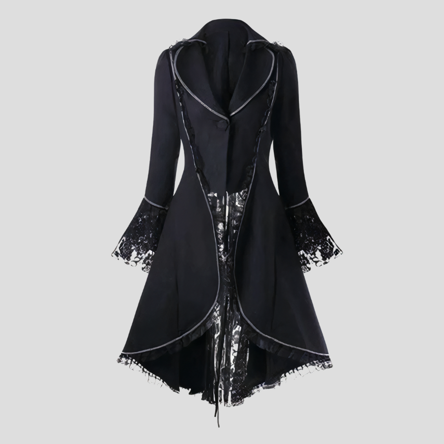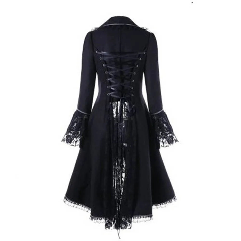 Punk paltas su raišteliais ir nėriniuotomis rankovėmis juodas