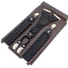 Punk petnešos su įstrižomis mėlynomis-geltonomis juostelėmis ir metaliniais užsegimais