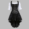 Punk Rock juoda suknelė su odiniu korsetu ir asimetrišku nėriniuotu sijonu 4XL