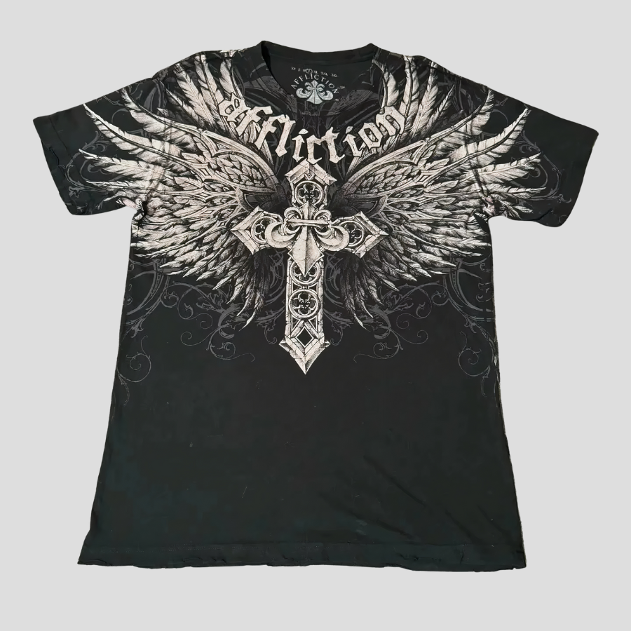 Punk Rock marškinėliai su sparnais ir kryžiumi Grunge