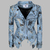 Punk Rock Metal mėlyna odinė striukė su laikraščio spauda Peržiūrėti parinktis