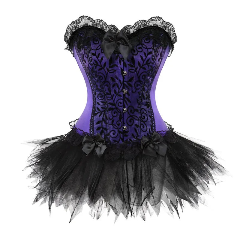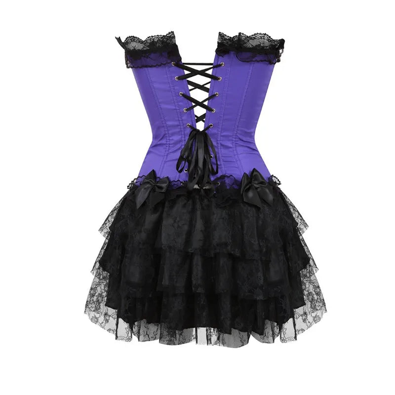 Punk Rock violetinis korsetas su nėriniais ir juodu sijonėliu 6XL