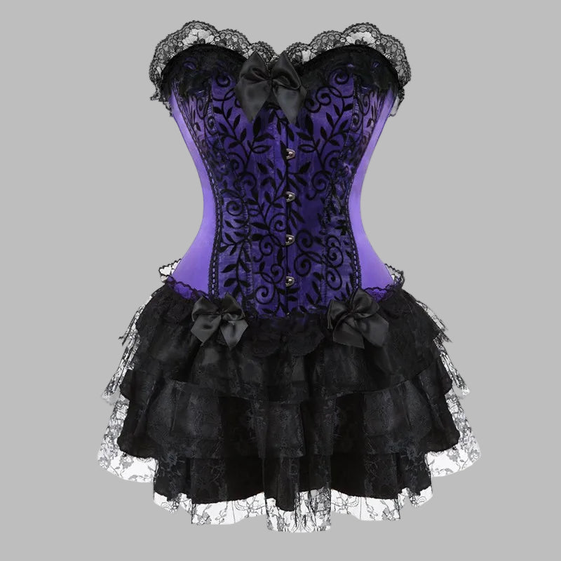 Punk Rock Violetinis Korsetas su Nėriniais ir Juodu Sijonėliu