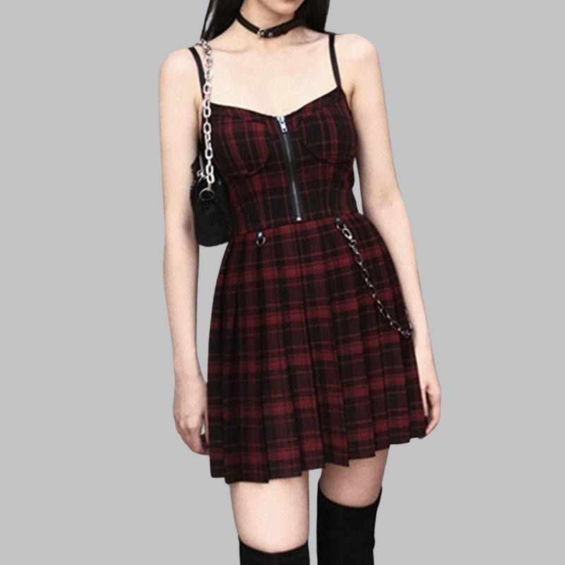 • Puošyba: raudoni škotiški langeliai, metalinė grandinė
