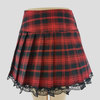 Czerwona Spódnica Grunge Punk w Kratę z Koronką na Dole