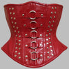 Raudonas punk roko korsetas su kniedėmis ir metaliniais žiedais