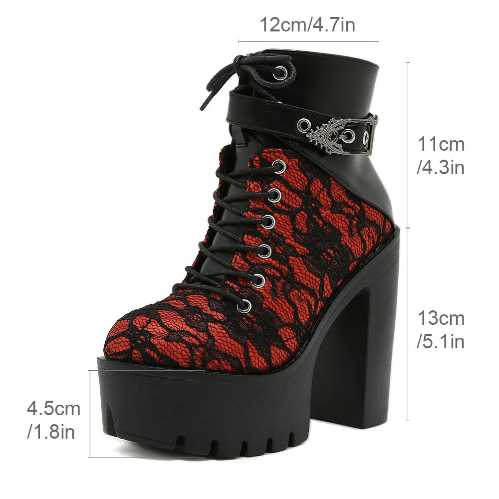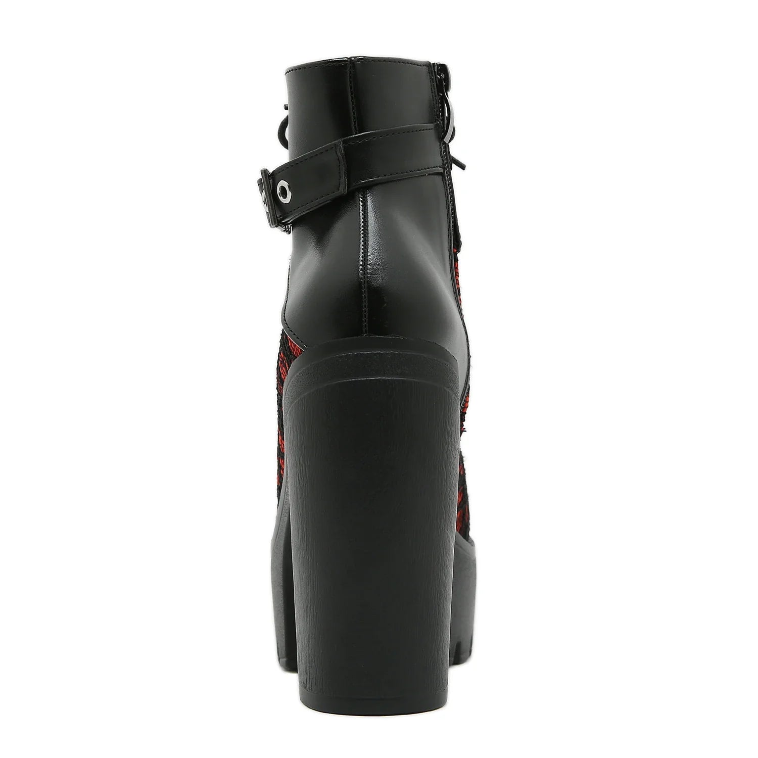 Raudoni aukštakulniai batai su raišteliais ir sagtimis – punk rock stilius Peržiūrėti parinktis