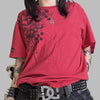 Raudoni oversize marškinėliai su punk rock spauda Peržiūrėti parinktis