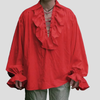 Czerwona Koszula Rock z Wiązaniem i Falbanami na Rękawach