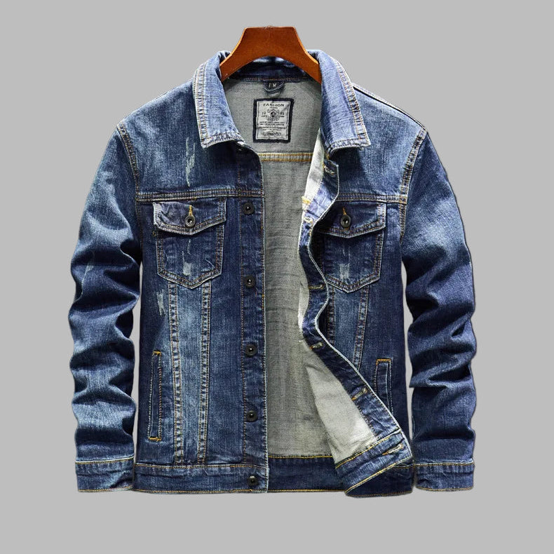 Rock stiliaus grunge džinsinis vintage švarkas su įbrėžimais