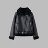 Rock juoda odinė striukė su avikailiu ir užtrauktukais