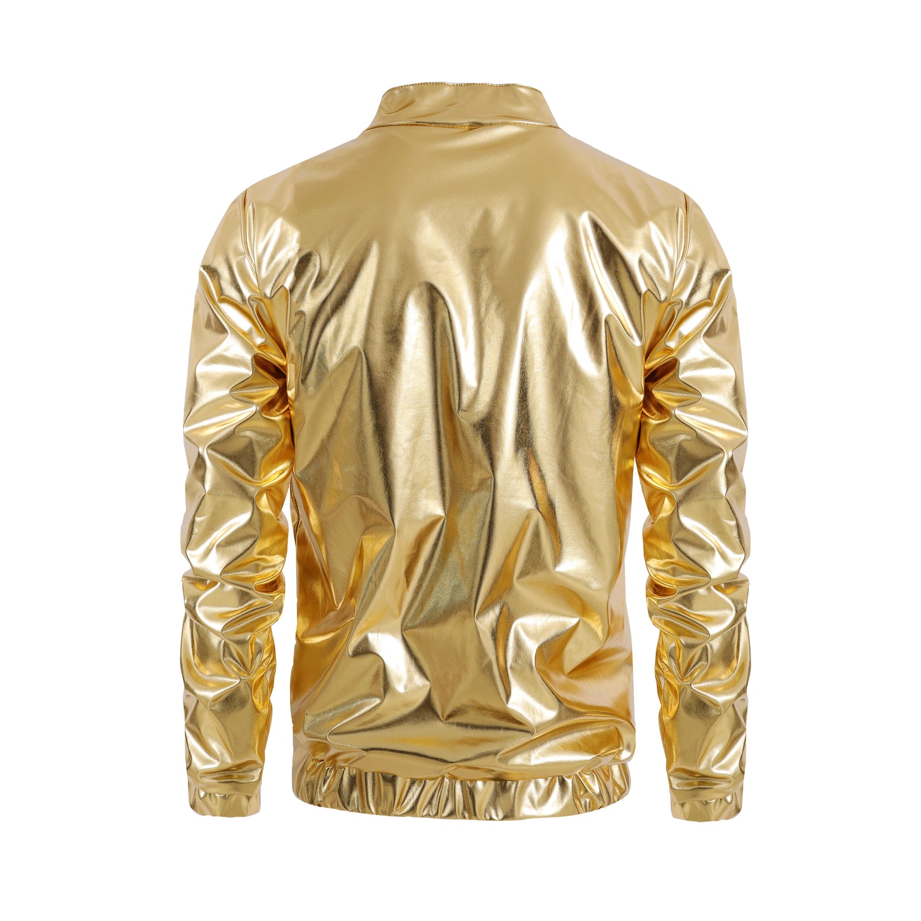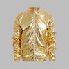 Auksinė blizganti metalinė vyriška roko bomberinė striukė