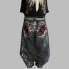 Rock pilkos vintage džinsai su siuvinėtomis rožėmis