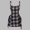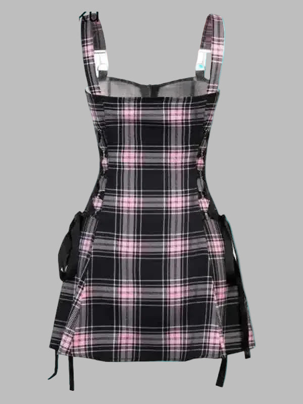 Rožinė languota suknelė su petnešomis ir juostelėmis punk stiliaus Peržiūrėti parinktis