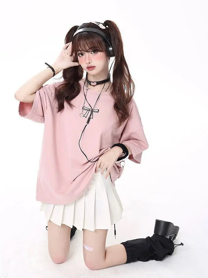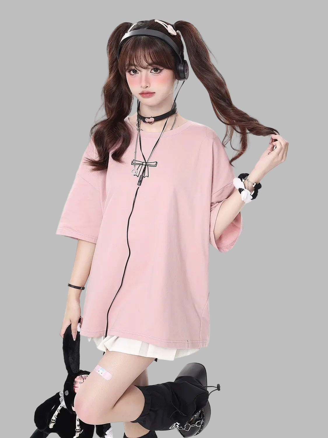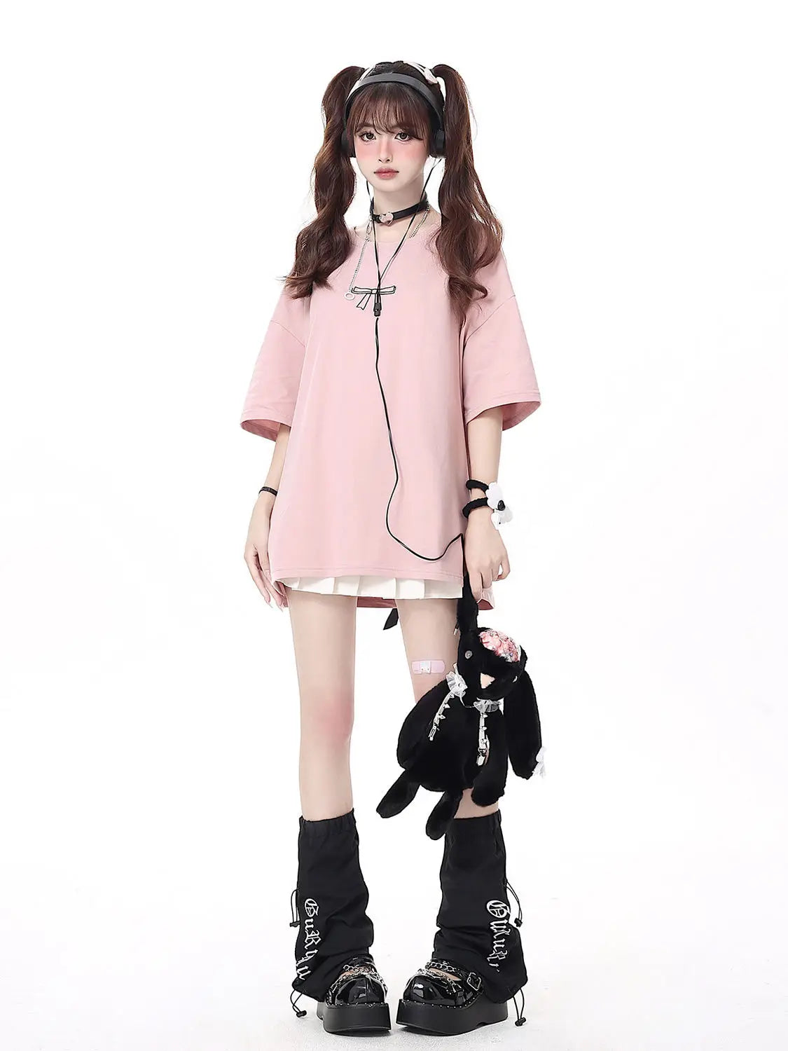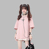 Rožinis Jirai Kei džemperis su raišteliais nugaroje