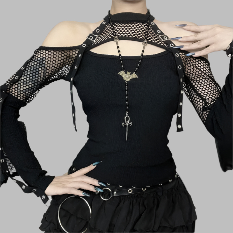 Seksualūs gotikiniai marškinėliai iš juodos nėrinių