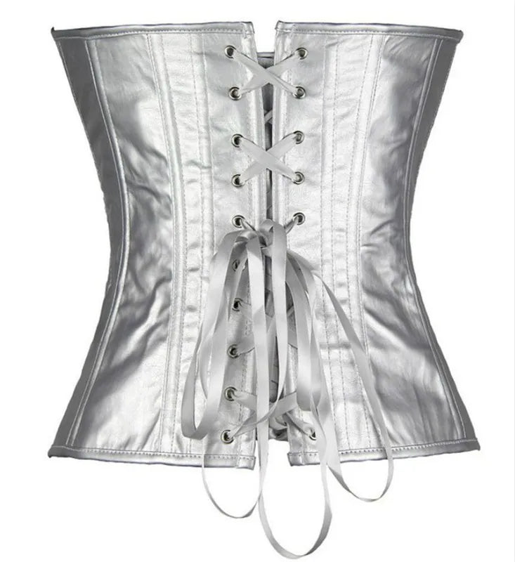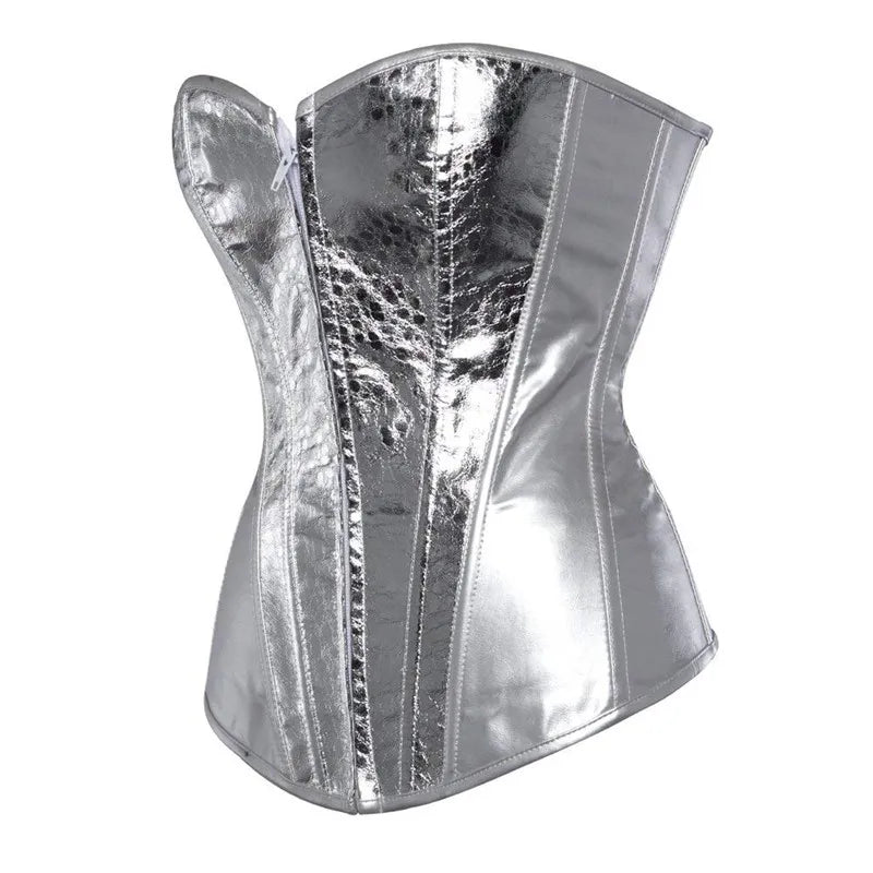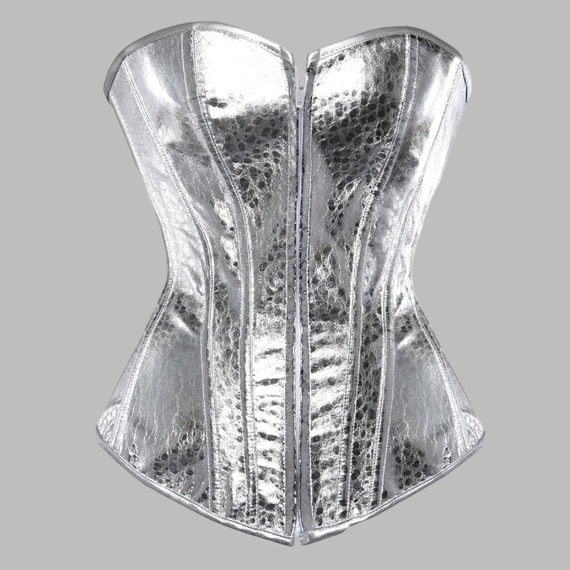 Sidabrinis korsetas su gyvatės odos efektu ir metalinėmis kaulėmis, dydis 7XL