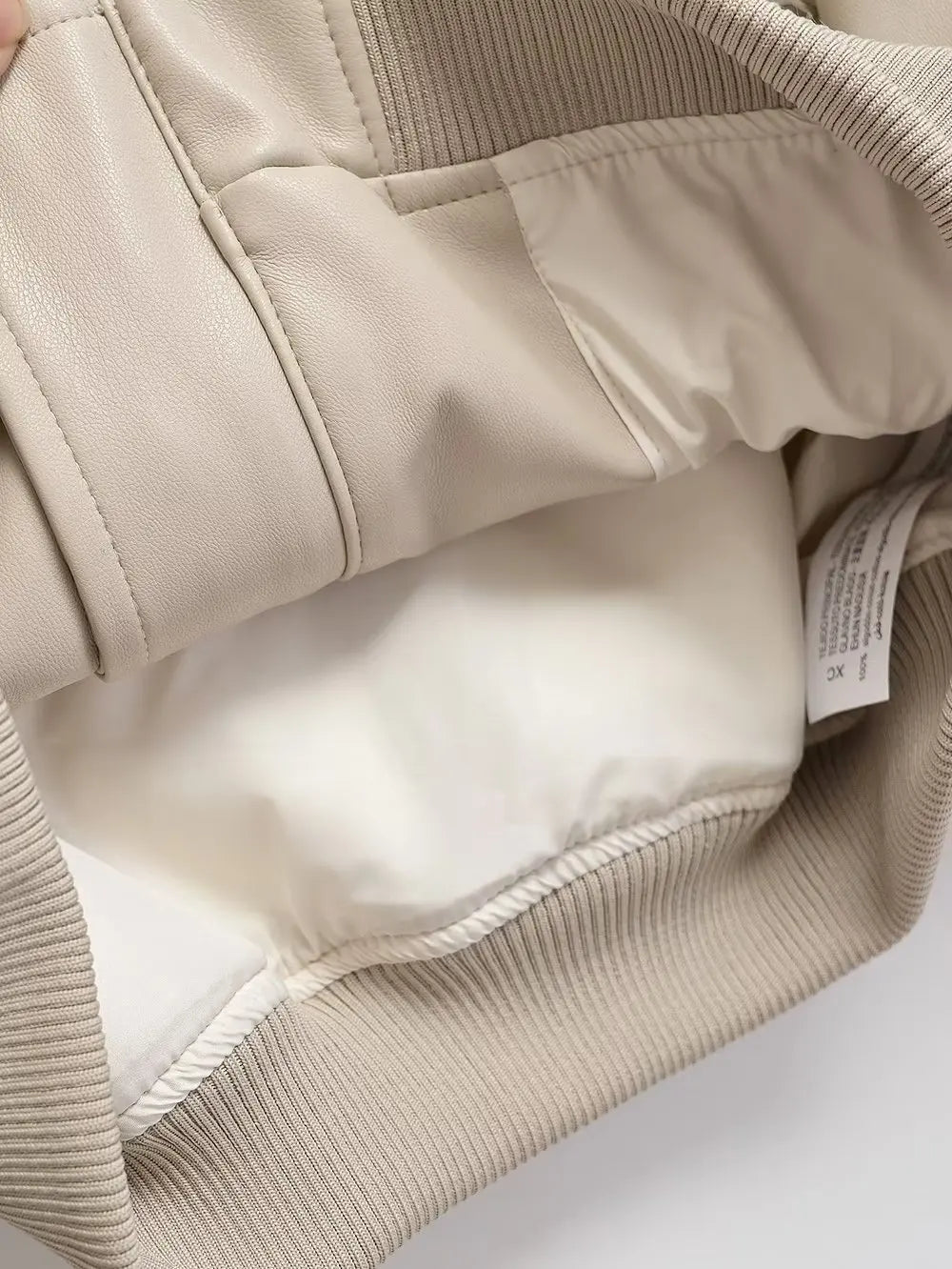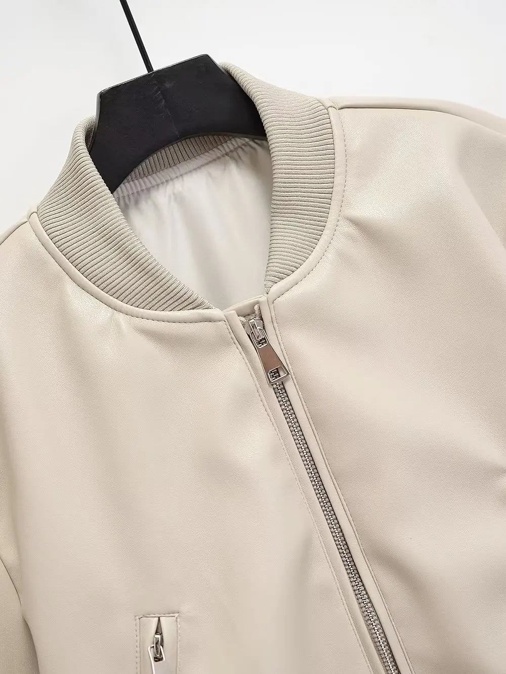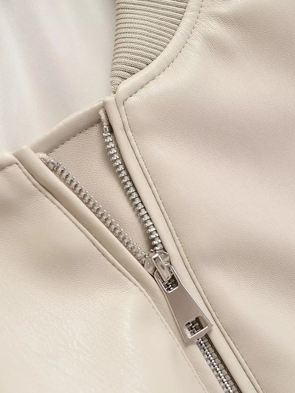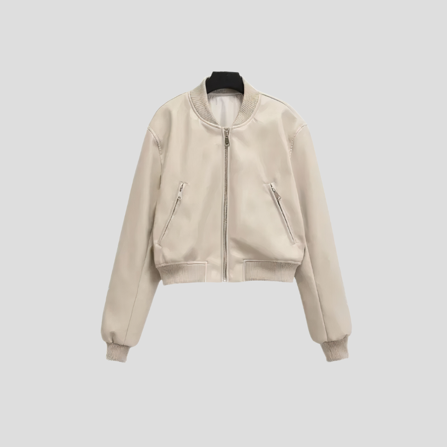 Smėlio spalvos punk rock stiliaus bomberis su užtrauktukais ir sutraukiamomis rankogaliais