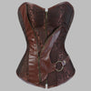 Steampunk asimetriškas rudas korsetas su odiniu diržu
