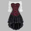 Steampunk korsetas bordo su juodu nėriniuotu Hi-Lo sijonu 6XL