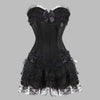 Steampunk gotikinis korsetas juodas su kaspinais ir nėriniuota raukšle 6XL