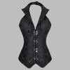 Steampunk gotikinis korsetas su aukšta apykakle ir metaliniais užsegimais juodas Peržiūrėti parinktis