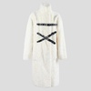 Ilgas baltas steampunk paltas su diržais punk rock stiliaus