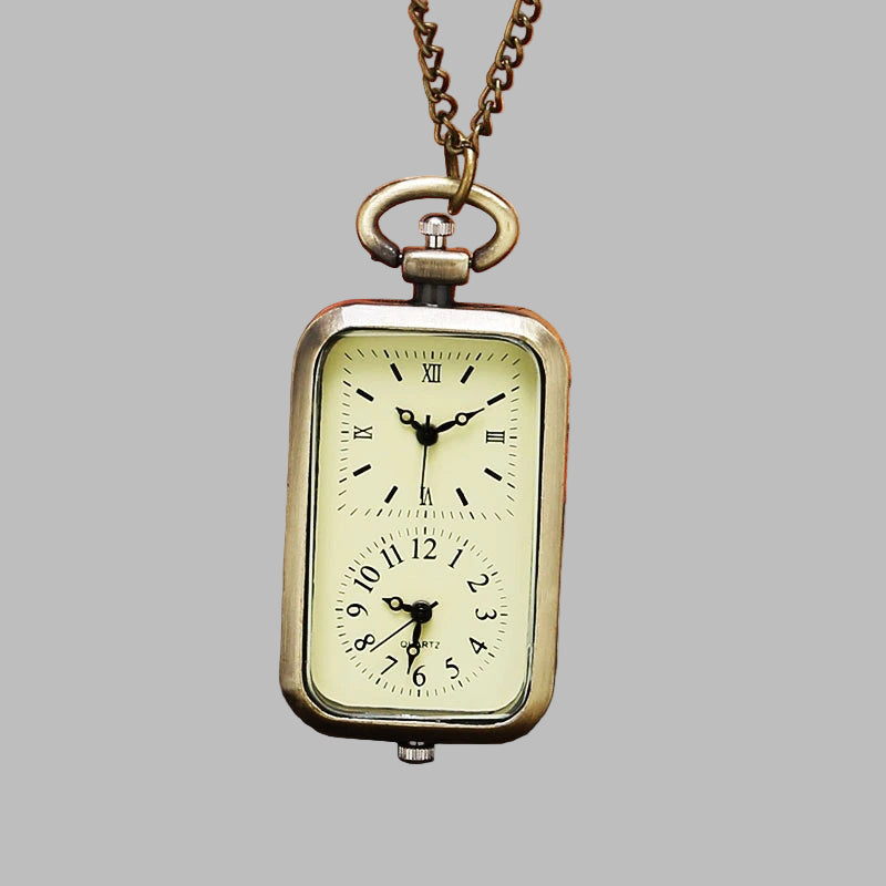 Retro dvigubas steampunk kišeninis laikrodis su grandinėle
