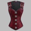Steampunk korsetas su dvigubomis petnešomis, bordo spalvos žakardinis metalas