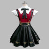 Steampunk sijonas su petnešomis ir odinėmis detalėmis, juodai raudonas