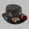 Steampunk skrybėlė su raudona rože ir akiniais juoda