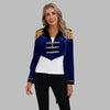 Tamsiai mėlyna karinė roko striukė su kutais ir auksinėmis sagomis