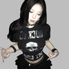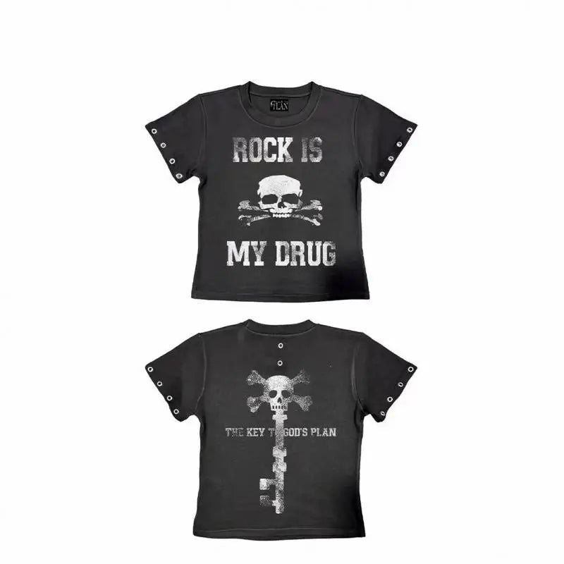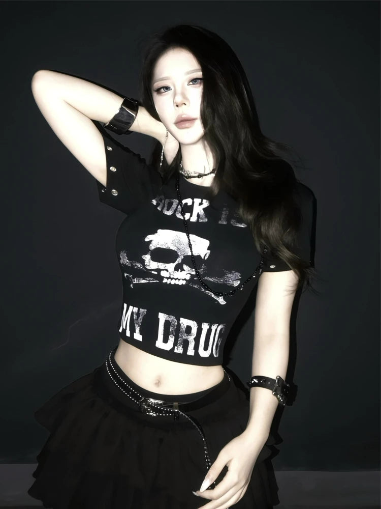 Trumpas viršus su kaukolės atspaudu, punk metal rock stilius Peržiūrėti parinktis