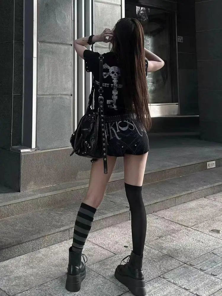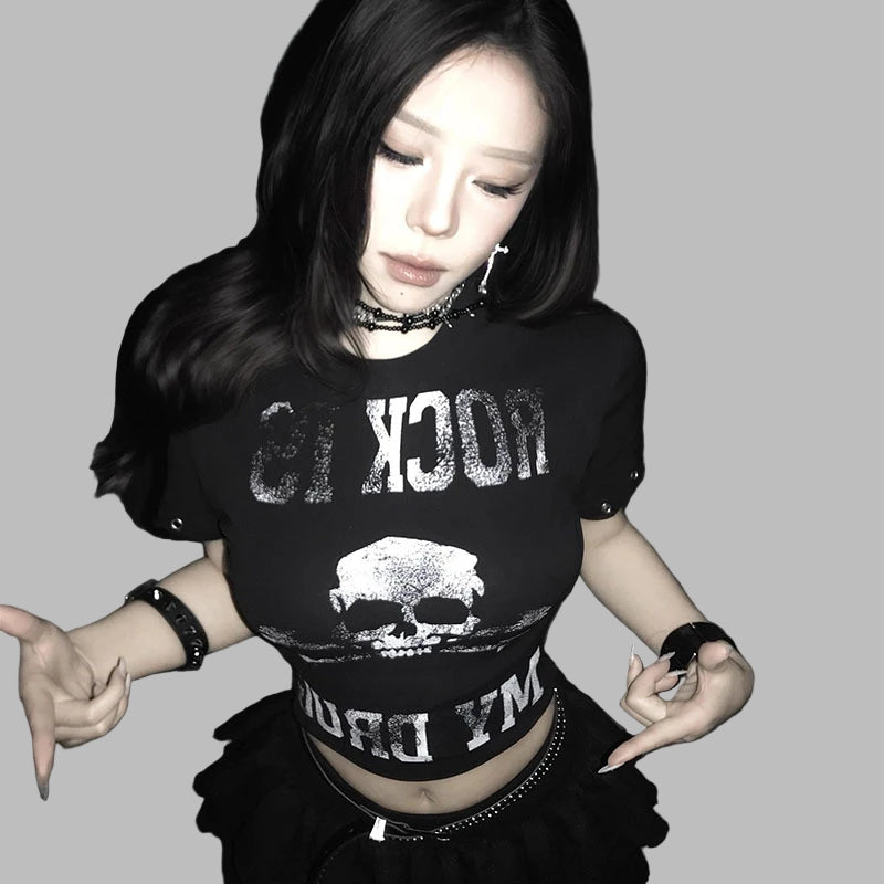 Trumpas viršus su kaukolės atspaudu, punk metal rock stilius
