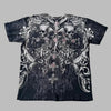 Unisex juodas gotikinis marškinėlis su kaukolėmis, kryžiais ir sparnais
